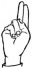На ћирилици написано КОСТАДИН РАСПОТНИК састоји се из 17 слова [?]. Исписано ћириличном једноручном азбуком за глувонеме: